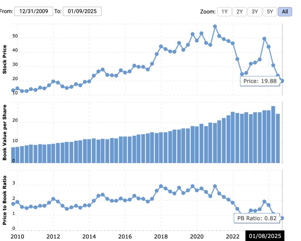 - Potentially Undervalued – Trading at 0.82 Price-to-Book Ratio